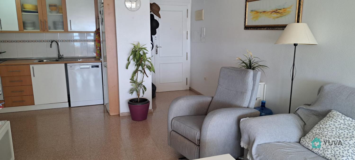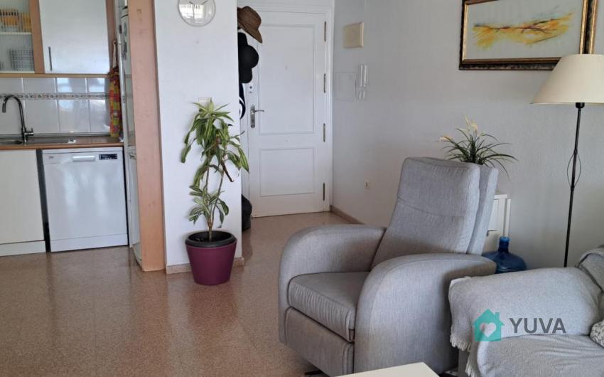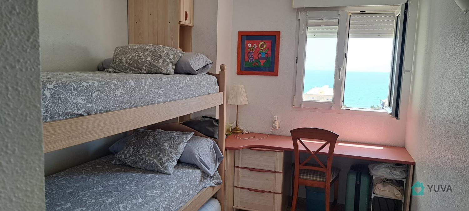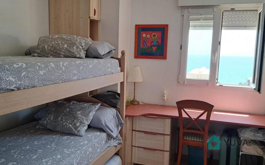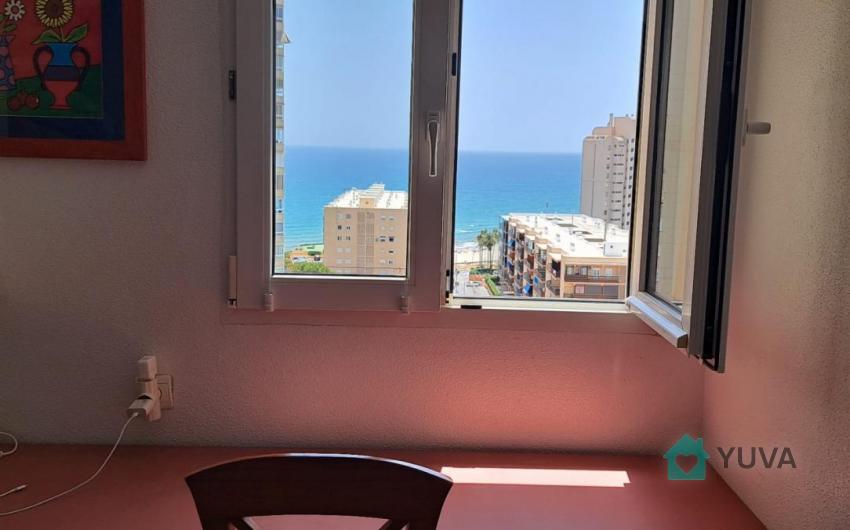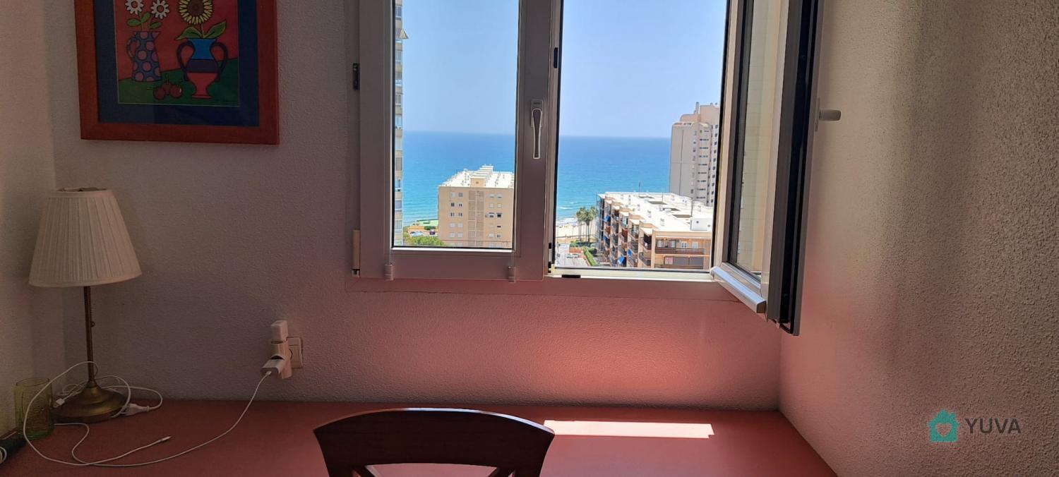 Flat with 2 bedrooms, one bathroom, terrace and living room-kitchen. Located very close to the beach, with excellent views and in a luxury urbanisation: tropical swimming pool, heated swimming pool, paddle and tennis courts, children's play area, barbecues. Very close to the tram stop and the French Lyceum. Basic features 75 m² constructed area 2 bedrooms 1 bathroom Terrace Second hand/good condition Built-in wardrobes Only exterior access adapted for people with reduced mobility Building 9th floor exterior With lift Equipment Air conditioning Swimming pool Garden